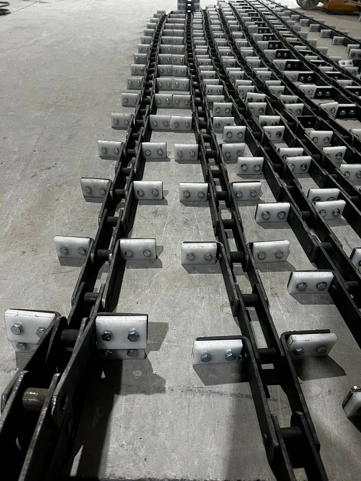 Fabricamos cadenas tipo Redler de alta calidad, diseñadas para asegurar un transporte eficiente y continuo de materiales a granel. Utilizamos acero de alta resistencia y procesos de precisión para garantizar durabilidad, rendimiento óptimo y fiabilidad en entornos industriales exigentes.